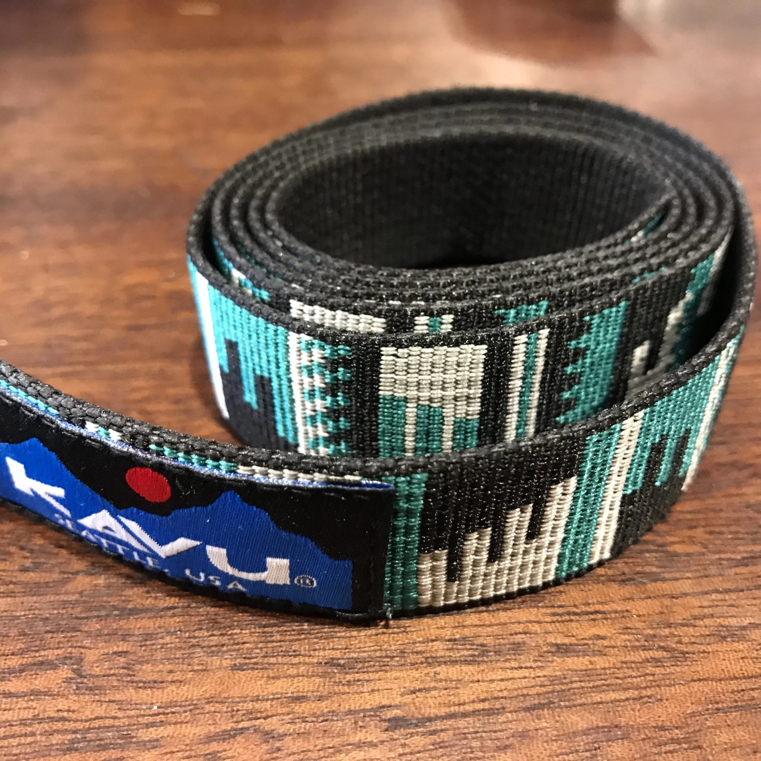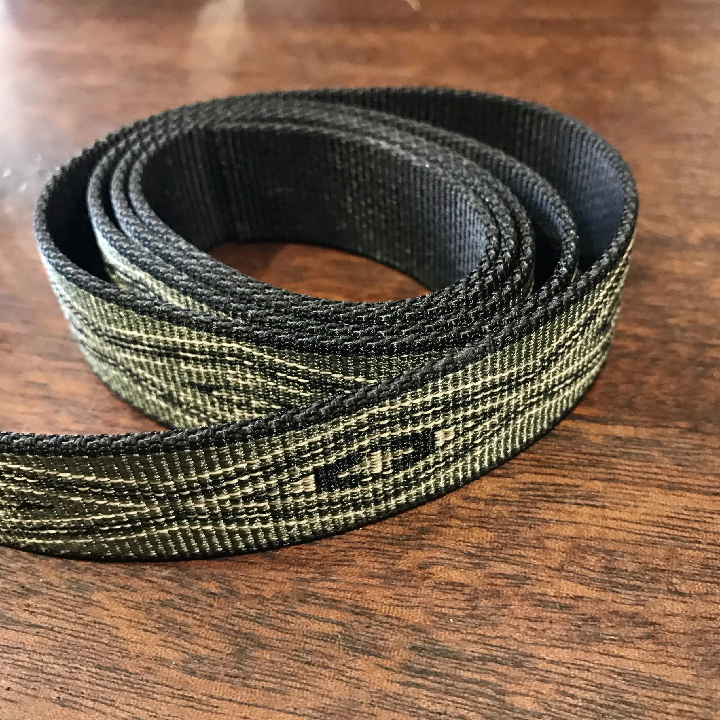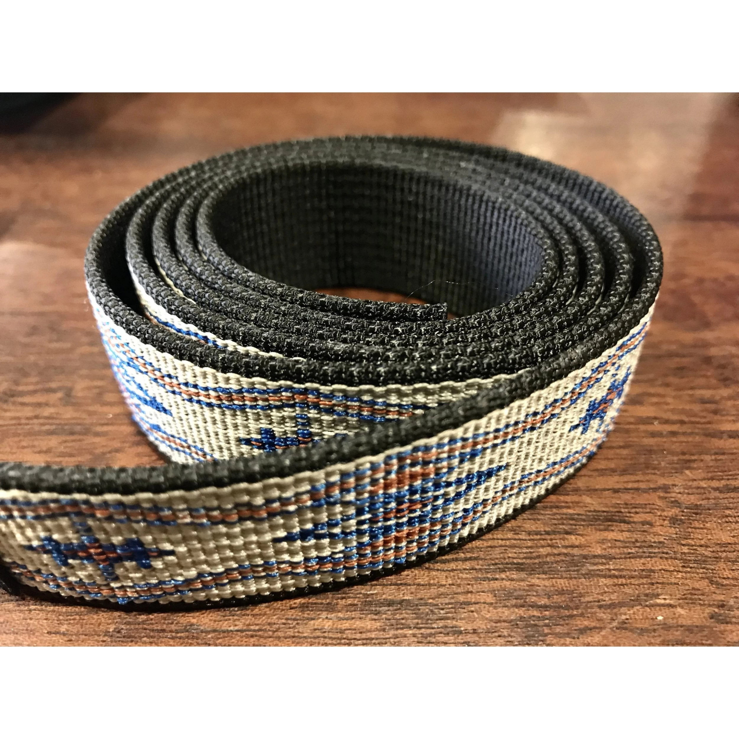 1” wide flat patterned nylon webbing, center release buckle. Unisex.