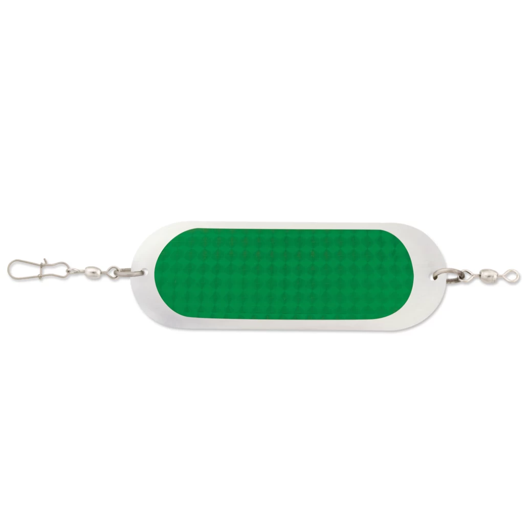 Slightly narrower for its similar length to the Herring Dodger, the Jensen Dodger will tolerate faster speeds preferred by anglers in the Great Lakes. It swims with a sharp side-to-side snap that livens the action of spoons, flies and lures. The selection of available colors includes those proven over decades to be the top performing finishes for drawing the attention of salmon.
